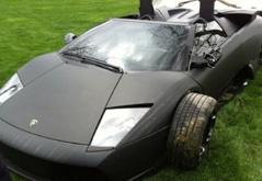 MoreA 2006 matte black covered Lamborghini Murcielago Roadster has been crashed in Columbus, Ohio. On a cold day, he Lamborghini Murcielago Roadster lost grip, hit curb and went airbone.