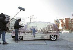 MoreThe German automaker has wrapped one of its F-Cell hydrogen fuel-cell powered cars with an "invisibility cloak" to highlight the small impact that it says the car has on the environment, as it emits only water vapor out of its exhaust.